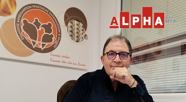 Ο πρόεδρος του Συλλόγου Δανειοληπτών και Προστασίας Καταναλωτών Βορείου Ελλάδος μίλησε στο Ραδιόφωνο Alpha 88.6 στη δημοσιογράφο κα Σίσσυ Ακοκκαλίδου, για τις εξελίξεις στα θέματα των Δανειοληπτών.